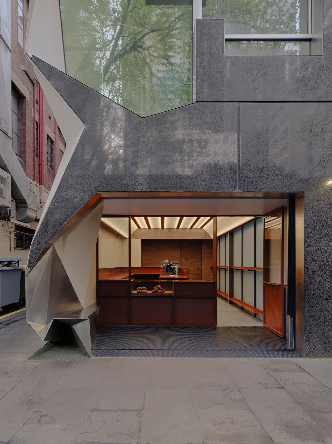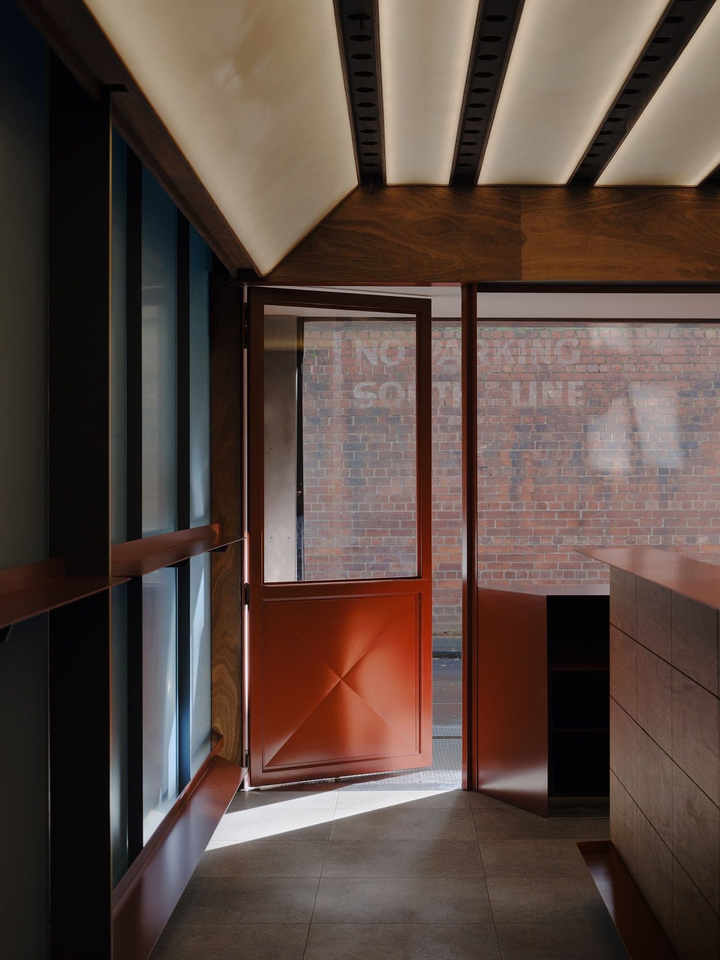 Blink and you’ll miss it. It’s 8:25am on a Thursday, there’s a line of people pouring out of Palace Coffee. Located down a Melbourne laneway at the base of Monaco House, it faces the Melbourne Club’s fortress-like brick wall. It’s an espresso bar, no seats, standing room only.